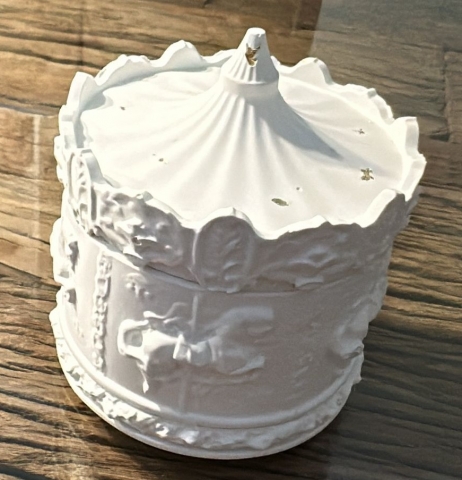 Sehr schöne kleine Deko Dose als nostalgisches Karussell mit Blattgold verziert.