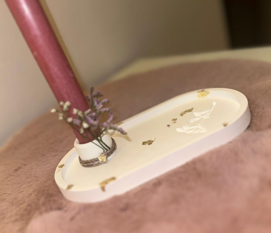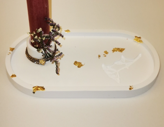 Ovaler Kerzenhalter mit Blattgold verziert (ohne Kerze)